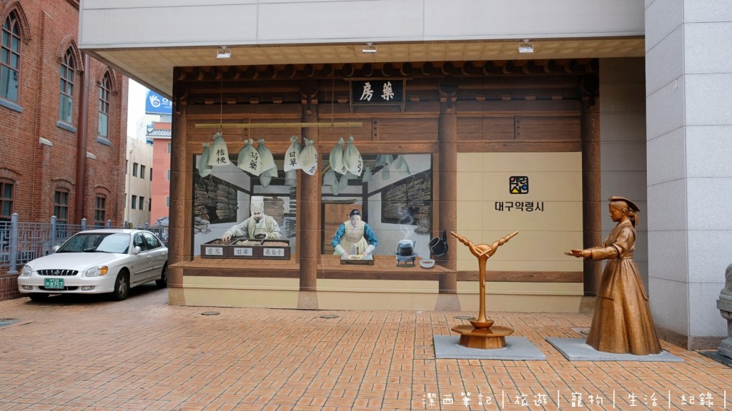 中城旅舍旁邊就是藥令市,會聞到非常多漢方中藥材的香味,約不到五分鐘就可以走到藥令門,走進去右手邊是藥令市韓醫藥博物館,左邊是觀光案內所,前面則是大邱第一禮拜堂。